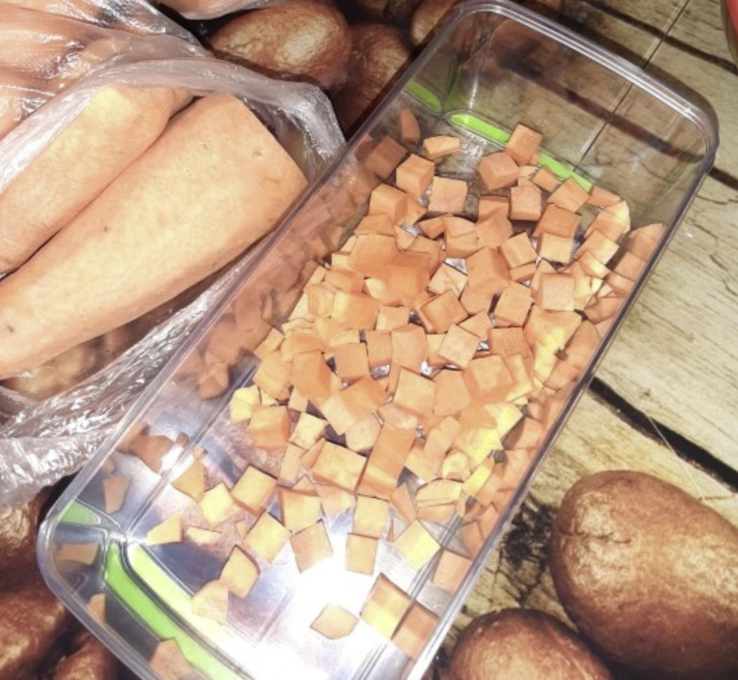 Ножи девайся заточены достаточно хорошо. Так хорошо, что даже лук нарезается ровными кубиками. И фактически без слез. Четко режет слайсы хоть огурец, хоть картофель. Для тех, кто не любит лишнюю жидкость в салате, предусмотрена корзина для сушки.