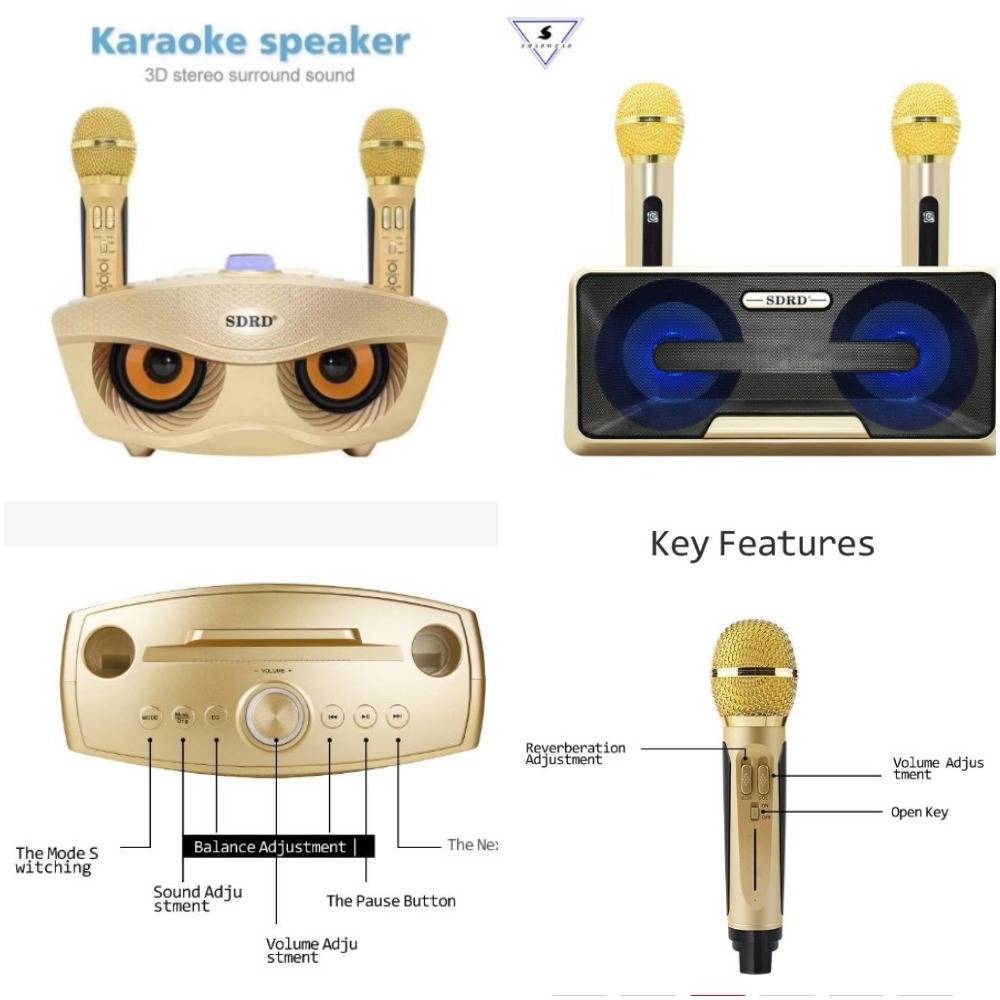 Профессиональный Bluetooth-микрофон со встроенной мини колонкой. Идеально подходит для пения в караоке. На внешней панели находятся несколько кнопок с эффектами и фильтрами. Благодаря объёмной реверберации присутствует качественный эффект эха. В корпусе есть отсек для карты памяти, разъём для наушников и USB.