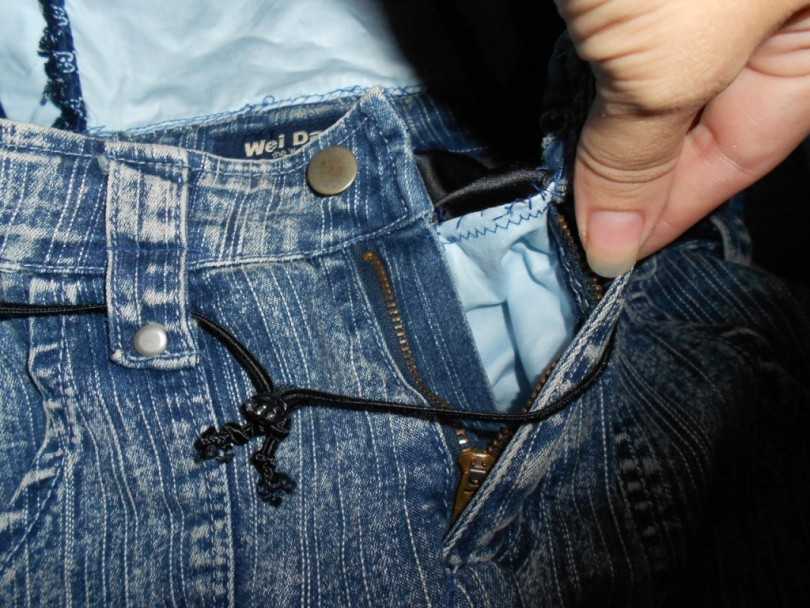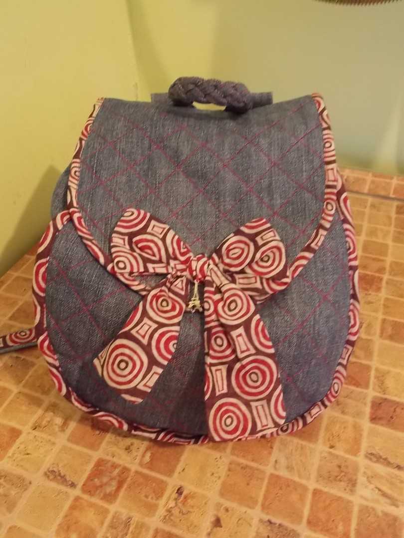 Разрезанные из штанин два куска ткани используются для создания самой большой части сумки – основы: