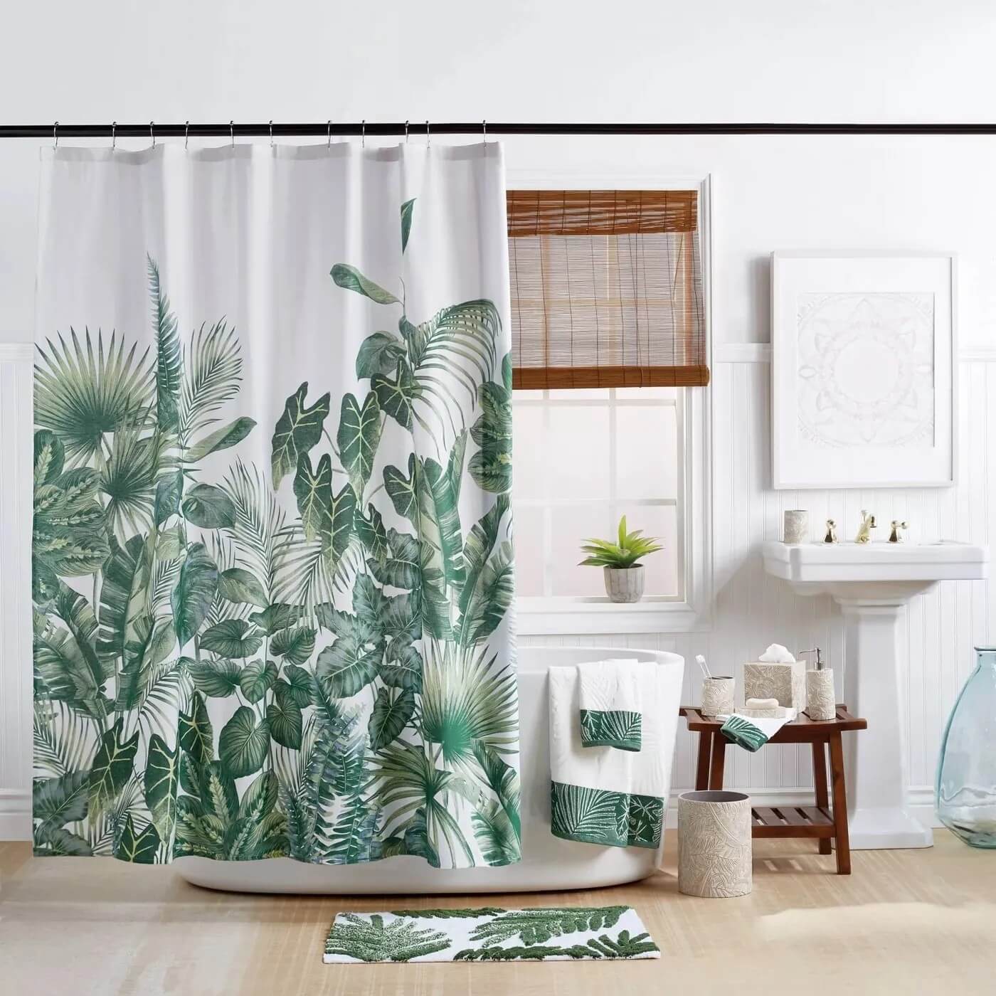 Добавить зелени в интерьер ванной с помощью растительных принтов на текстиле и собрать коллекцию аксессуаров в экостиле. Target