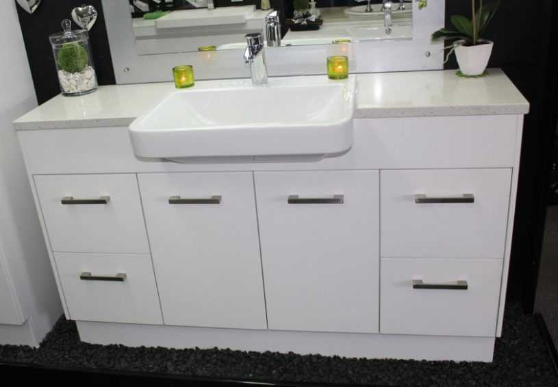 Прежде всего следует определиться с конструкцией будущей модели, которая зависит от выбранного умывальника. Встраиваемая раковина требует изготовления столещницы, полувстраиваемая – подгонку дверей или стенок. Избежать хлопот можно используя накладной умывальник.