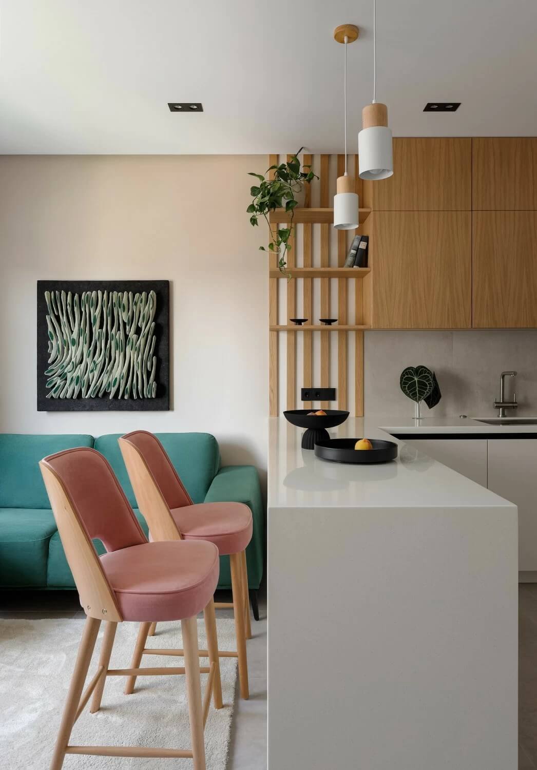 - подчеркивают дизайн кухни гостиной в 2022 году разнообразием светильников, позволяющих визуально разграничить функциональные зоны.