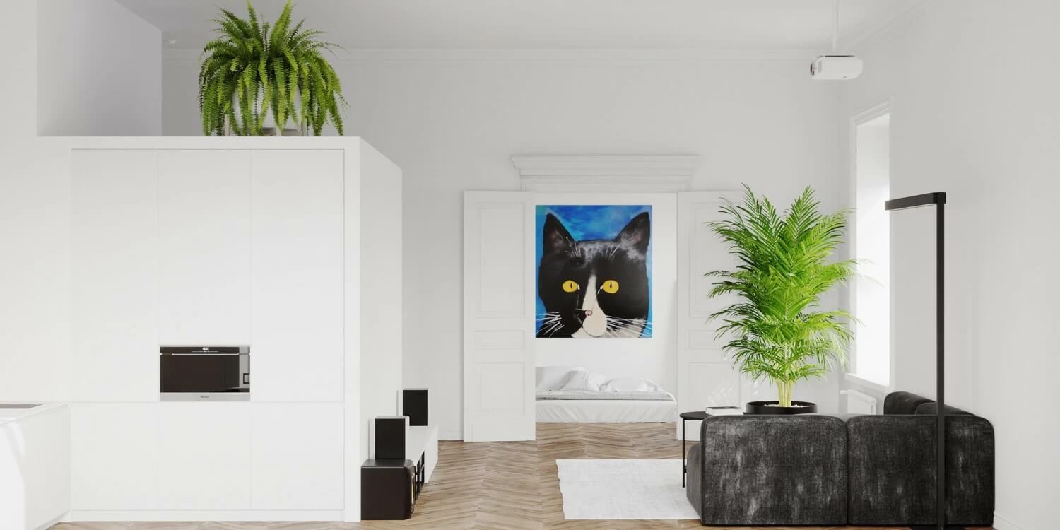 Без кота и жизнь не та. А с котом, тем более таким большим — во всю стену! — совсем другое дело. Проект квартиры в историческом доме на Большой Конюшенной, дизайнер Артём Алексеев