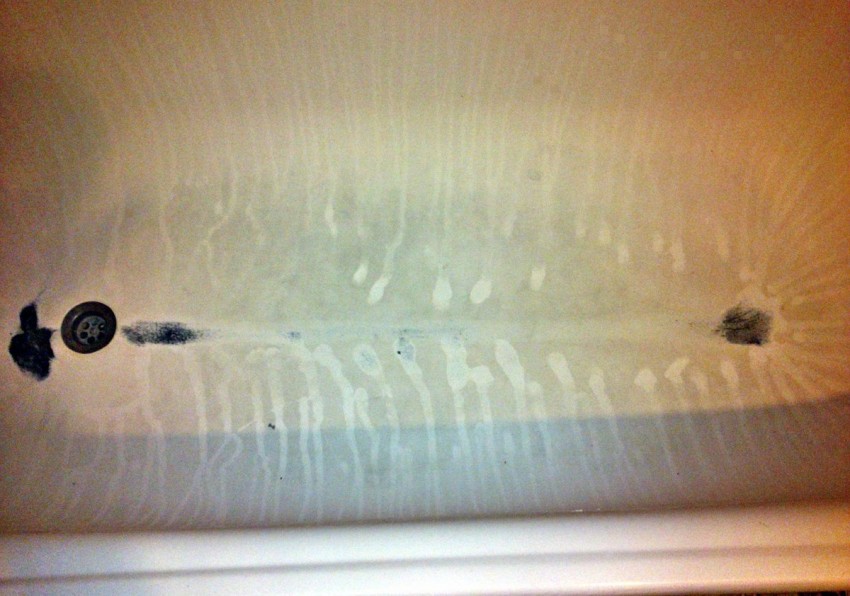 Наберите полную ванну горячей воды. Подождите 10-15 минут и слейте всю воду. Высушите и протрите поверхность. Для ускорения воспользуйтесь строительным феном