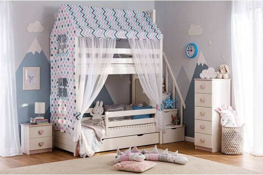 То же самое касается и вариантов цветовой гаммы. Для девочек выбирают нежные тона, часто розовый оттенок. Это позволит создать уютную атмосферу, которая порадует ребенка, подарит ощущение теплоты.