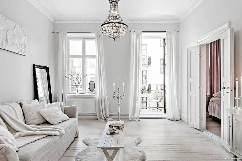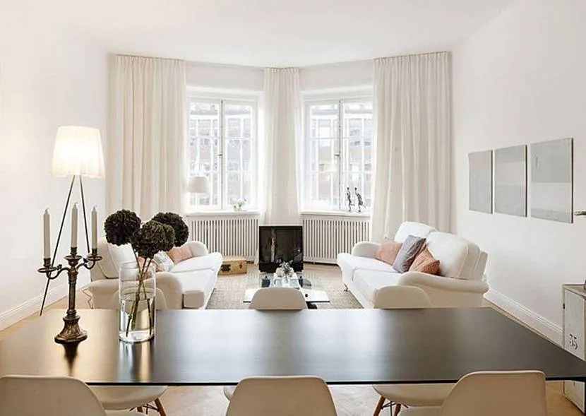 Правильный выбор белых штор создаст в интерьере ощущение воздушности, увеличения простора в помещении.