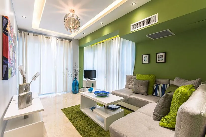 Позитивный летний оттенок сделает комнату светлой и солнечной. Белый цвет смягчит яркий тон.