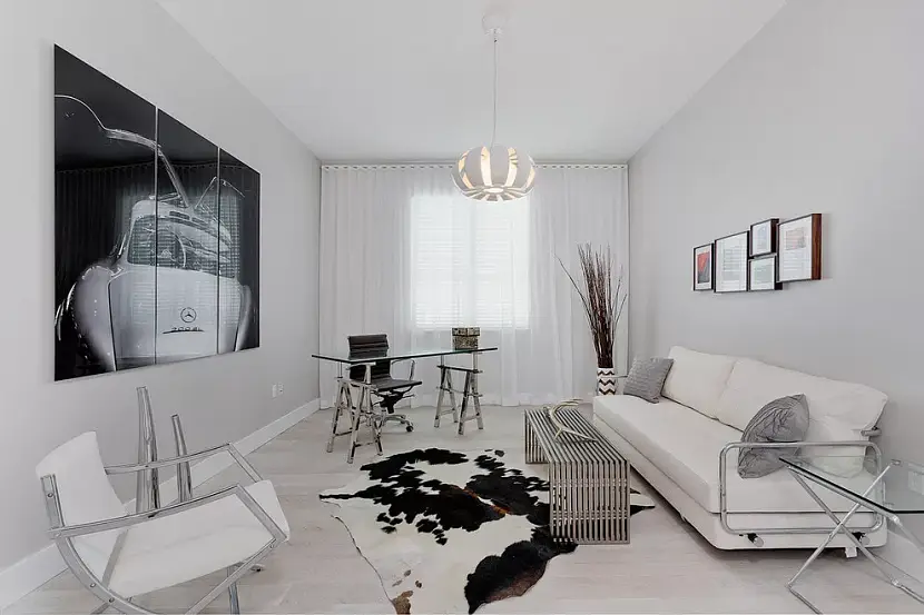 Шторы черно-белого цвета соответствует интерьеру с современным направлением.