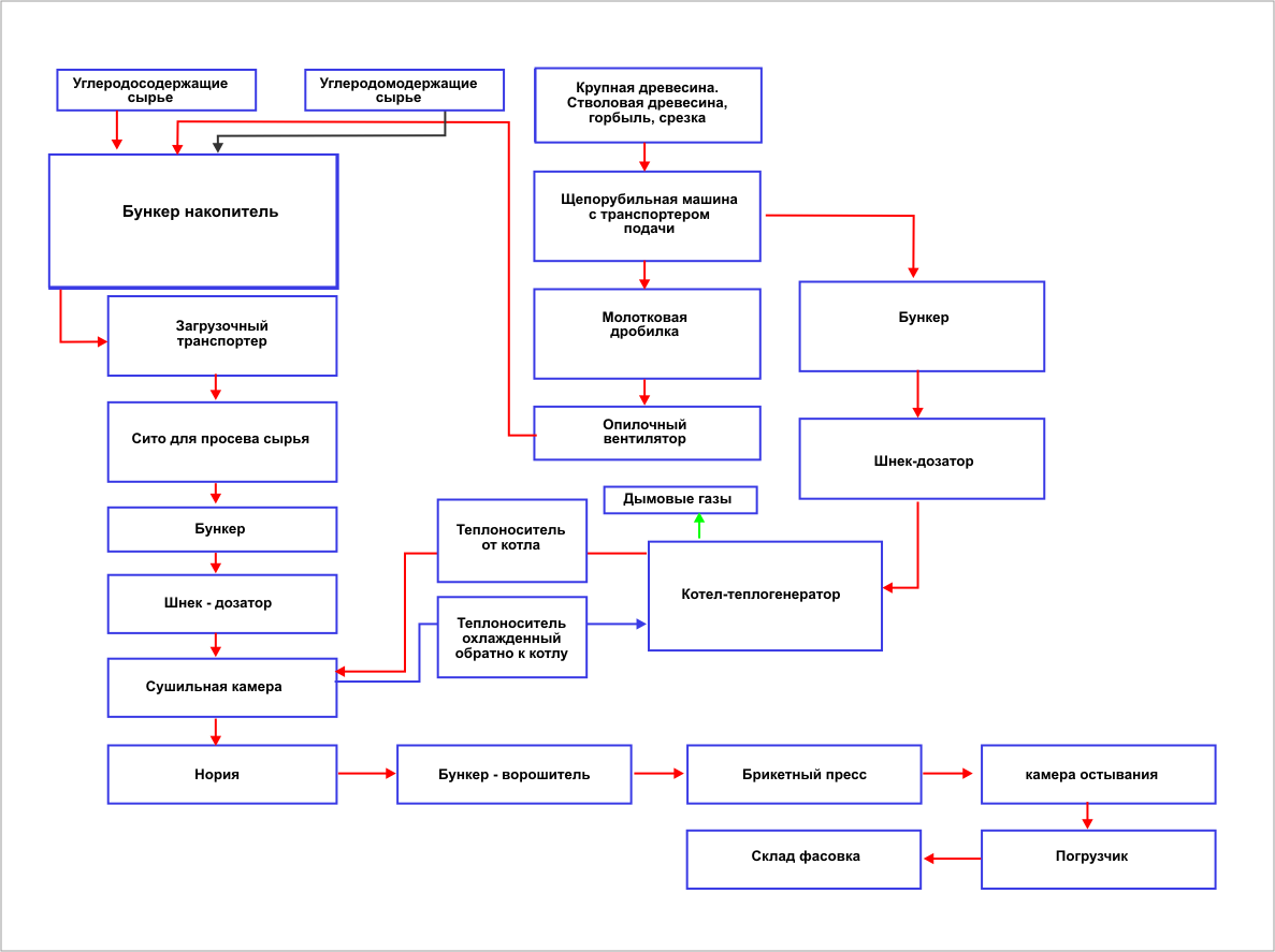 Схема технологического процесса брикетирования
