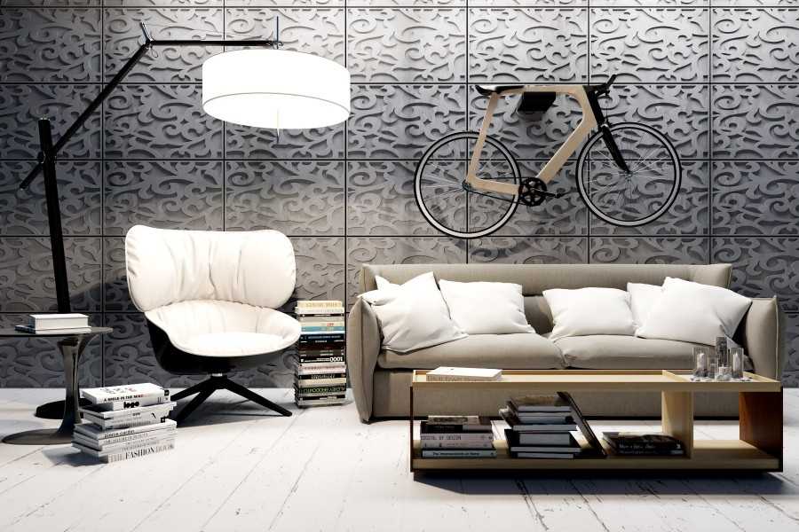Объёмное оформление выбирают, если стена полностью не занята и возле неё имеется большое свободное пространство. Тогда, вооружившись гипсокартоном, можно легко создать дополнительные архитектурные элементы: разнообразные ниши с разной глубиной, колонны или камин.