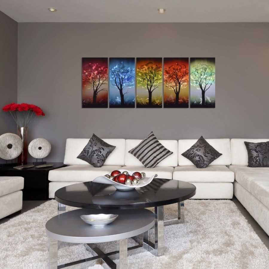 - Картины с изображением пейзажа, натюрморта, с геометрическими узорами, работы известных художников можно разместить над диваном, обычно как раз над ним и остается пустое место.