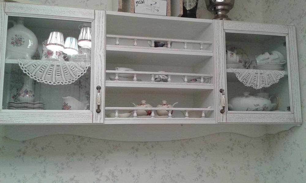 Красивые чашки можно разместить на открытых полках. Если есть желание — сделайте небольшие отдельные полочки под каждую чашку. В этом случае не обязательно подбирать одинаковую посуду — достаточно будет выдержать общую стилистику.