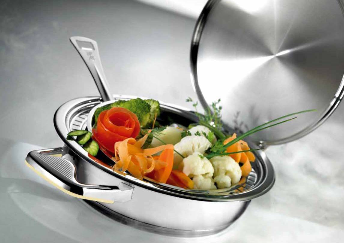 Брендовую посуду относят к утвари замкнутого цикла по нескольким причинам. Во-первых, каждая модель оснащена стенками толщиной не более одного миллиметра. При готовке пар не выбрасывается в воздух, а медленно обдает продукты питания. Таким образом, пища сохраняет витамины, цвет и вкус.