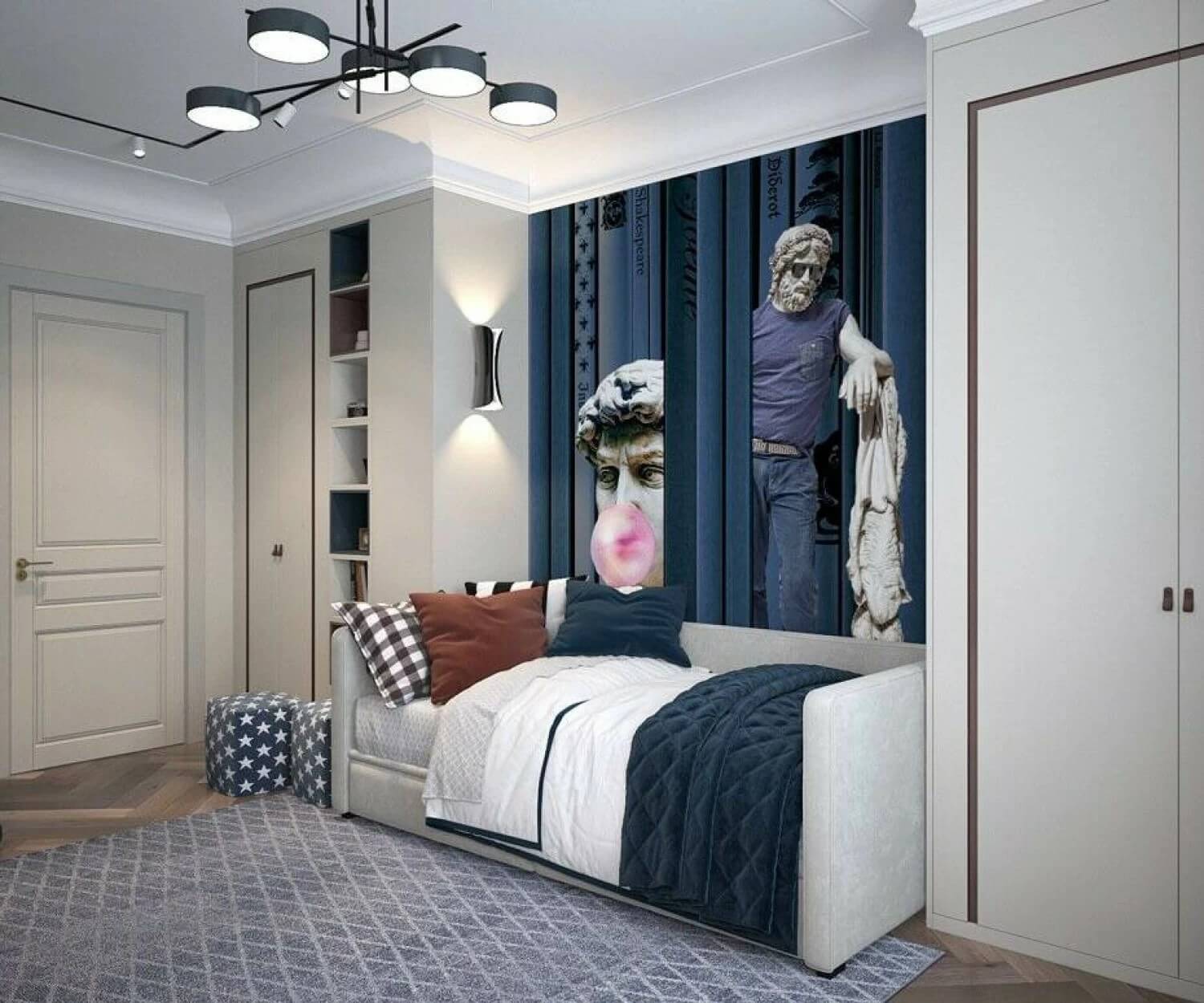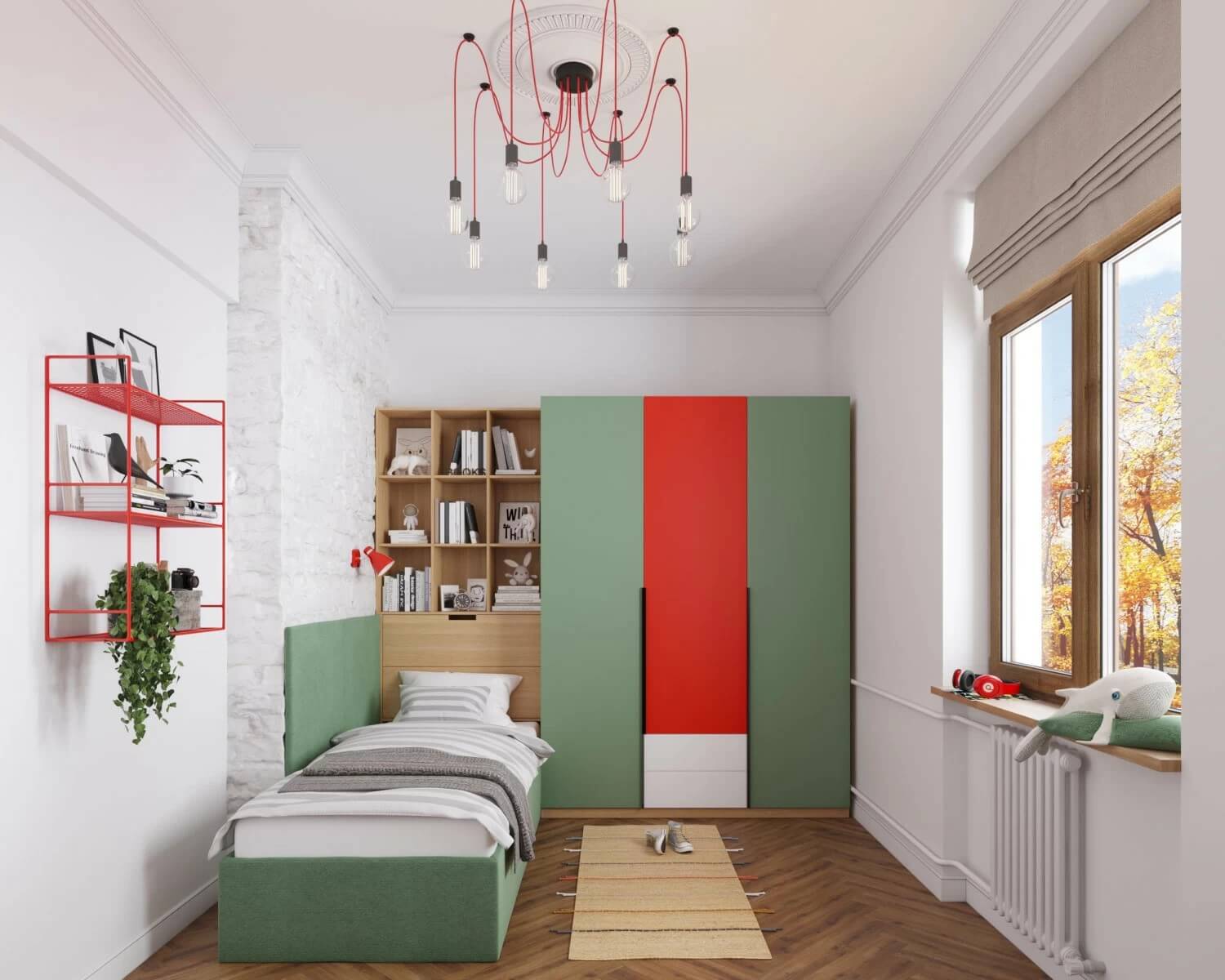 Односпальная тахта в интерьере детской. Проект трёхкомнатной квартиры в сталинском доме, дизайнер Светлана Шевченко