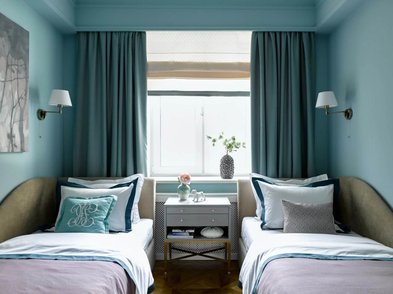 Две тахты в интерьере спальни для двух человек. Проект двухкомнатной квартиры типа «сталинка», дизайнер Елена Маркина