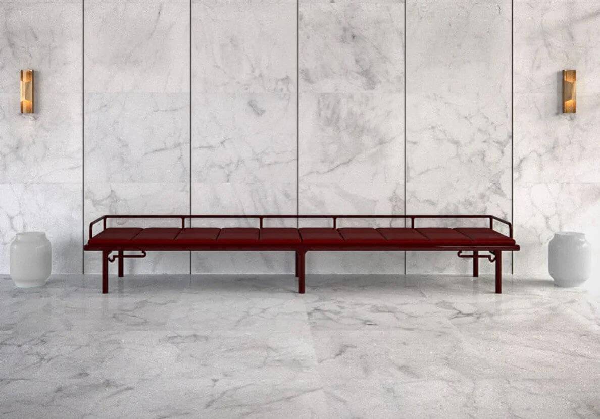 Тахта из окрашенного в насыщенный красный цвет металла в китайском стиле. Akkardenissim
