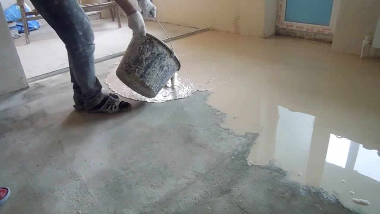 1) Наливной пол – используются текучие самовыравнивающиеся смеси. Укладывать стяжку очень просто: вещество просто выливается на поверхность и равномерно распределяется по площади самостоятельно, компенсируя все бугры, углубления, трещины. Вручную выравнивать поверхность нет необходимости, так как особенностью таких растворов является способность принимать нужное положение без вмешательства извне.