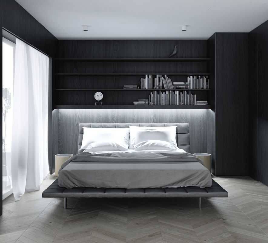 1. Начнем со стен. Выбирая между белыми и черными стенами, остановитесь на серых. Черные стены будут излишне давить и создадут гнетущее ощущение, а белые, хоть и хороши в большинстве случаев, обычно требует дополнительных цветных акцентов, которым неоткуда взяться в монохромном интерьере