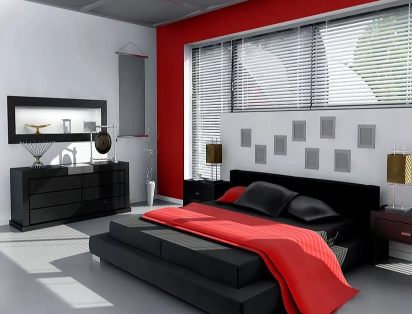 Но что касается интерьера, негатив черного часто разбавляют золотые, белые, сиреневые, серебряные, красные, серые цвета спальни и другие. Стоит отметить, что в этом дизайнерском направлении черный цвет может присутствовать до 80-90%, что согласитесь весьма не мало. Но не забываем, что речь идет о спальне.
