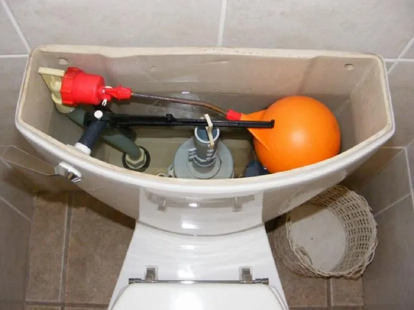 Неисправность поплавкового механизма. В старых моделях унитазов нередко возникала ситуация, когда в пластиковую грушу, имеющую внутреннее отверстие для фиксации латунного прута, попадала вода. Она заполнялась, ее вес увеличивался и в результате терялась плавучесть, следствием этого становилось переполнение бачка водой и слив ее через переливную трубу.