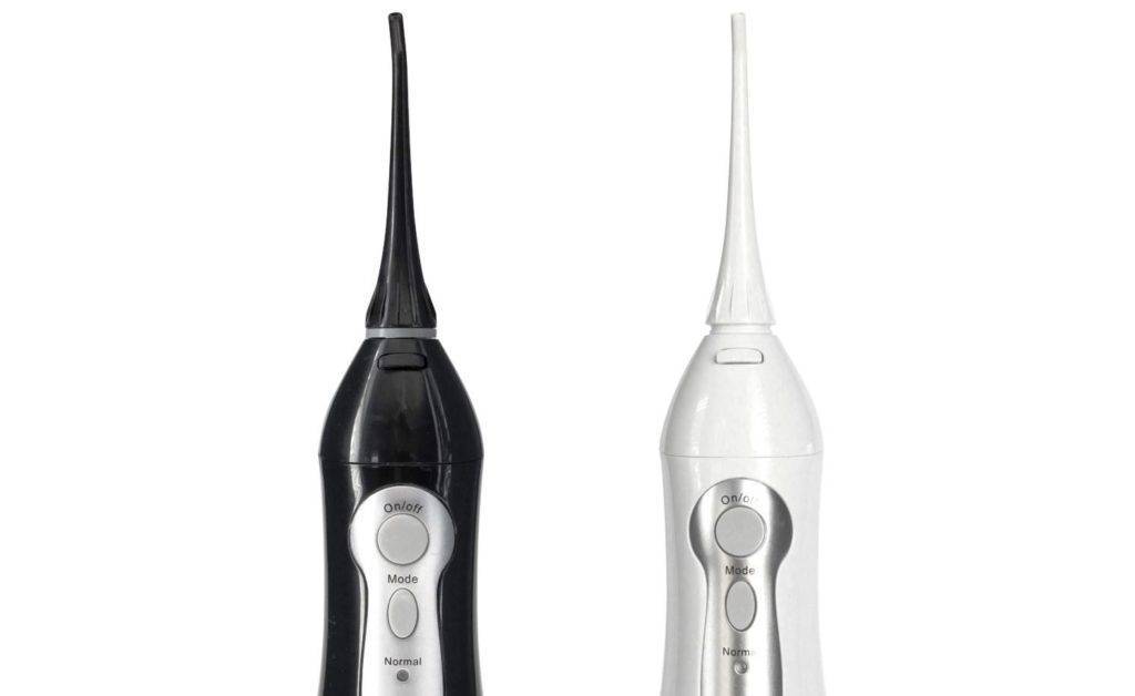Инструмент состоит из корпуса, резервуара для жидкости и нескольких насадок, которые одевают в зависимости от выполняемой процедуры. В корпусе расположен двигатель, который при помощи компрессора создает давление воды. Она поступает через трубку и насадку под сильным напором. Пользователь направляет ее на десны. Под воздействием этой тонкой струи удаляются из труднодоступных участков остатки пищи и налет, вымывая все, что осталось после обработки щеткой.