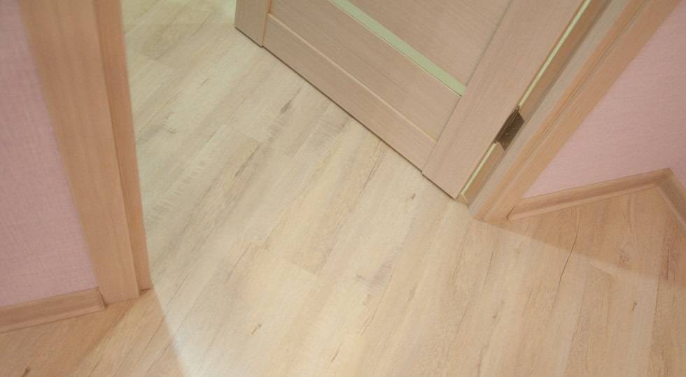 Сегодня двери с порогами практически не устанавливают, значит вам ничего не будет мешать при укладке напольного покрытия.