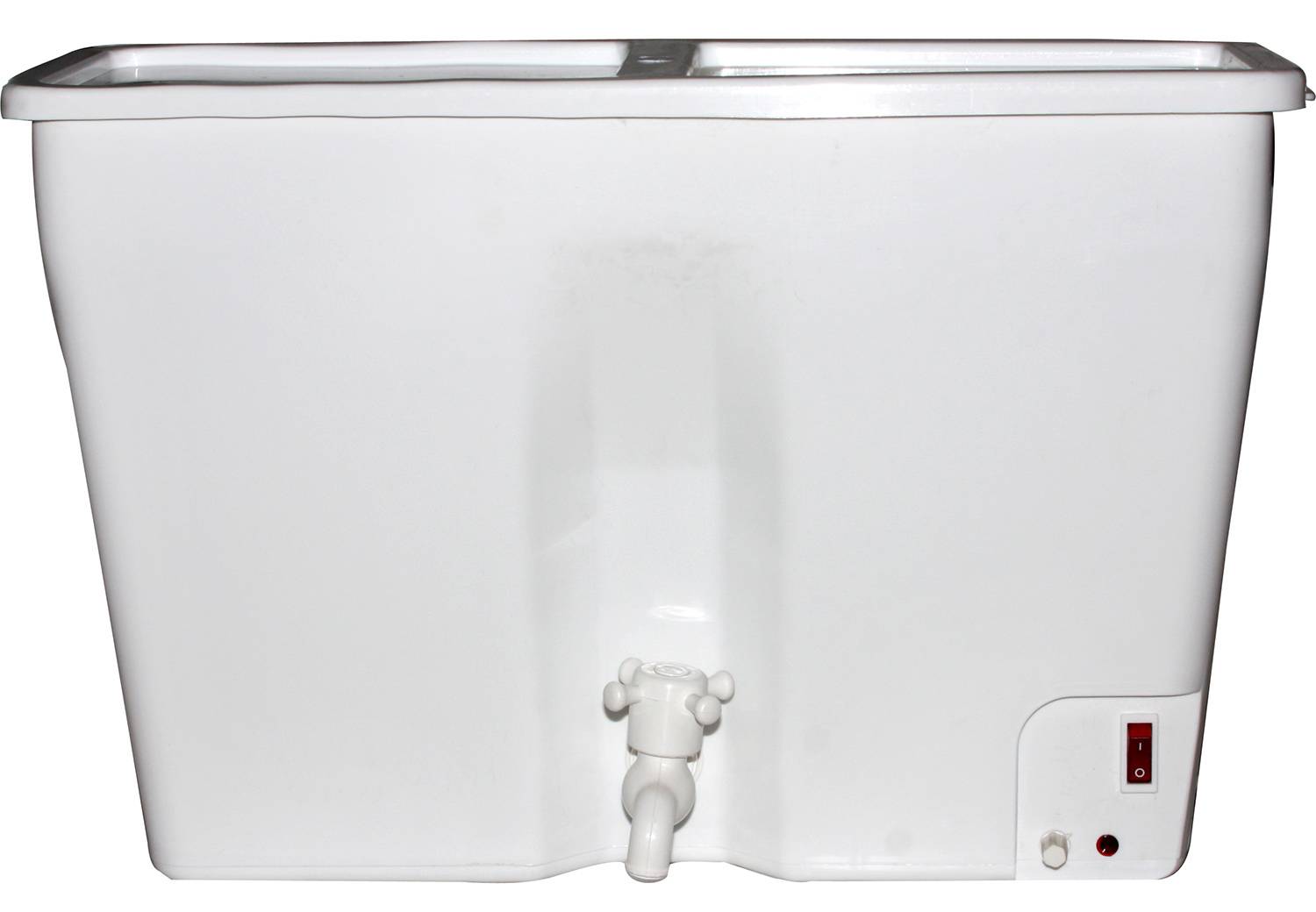 Умывальник с водонагревателем способен долгое время сохранять температуру воды до 55-56 °C. Вместительный бачок способен обеспечить теплой водой всю семью, а нагревательный элемент быстро доводит до нужной температуры воду. Благодаря тому, что водонагреватель имеет антикоррозийное покрытие, вода в умывальнике всегда будет чистой и свежей.