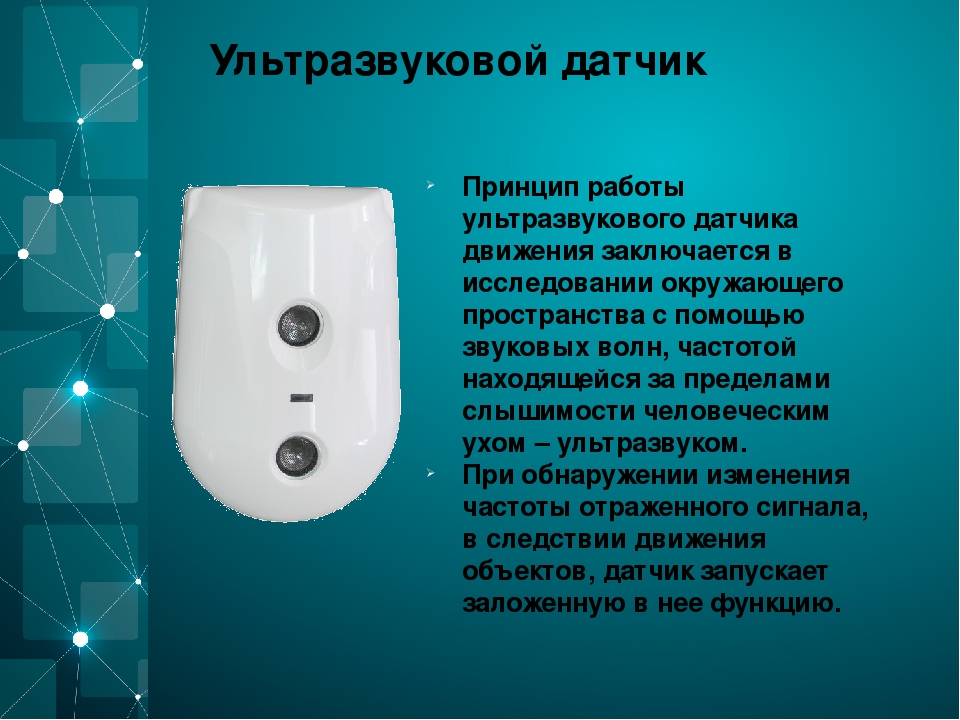 Эти приборы анализируют не воспринимаемый слухом человека ультразвуковой спектр. Принцип действия датчика движения таков:
