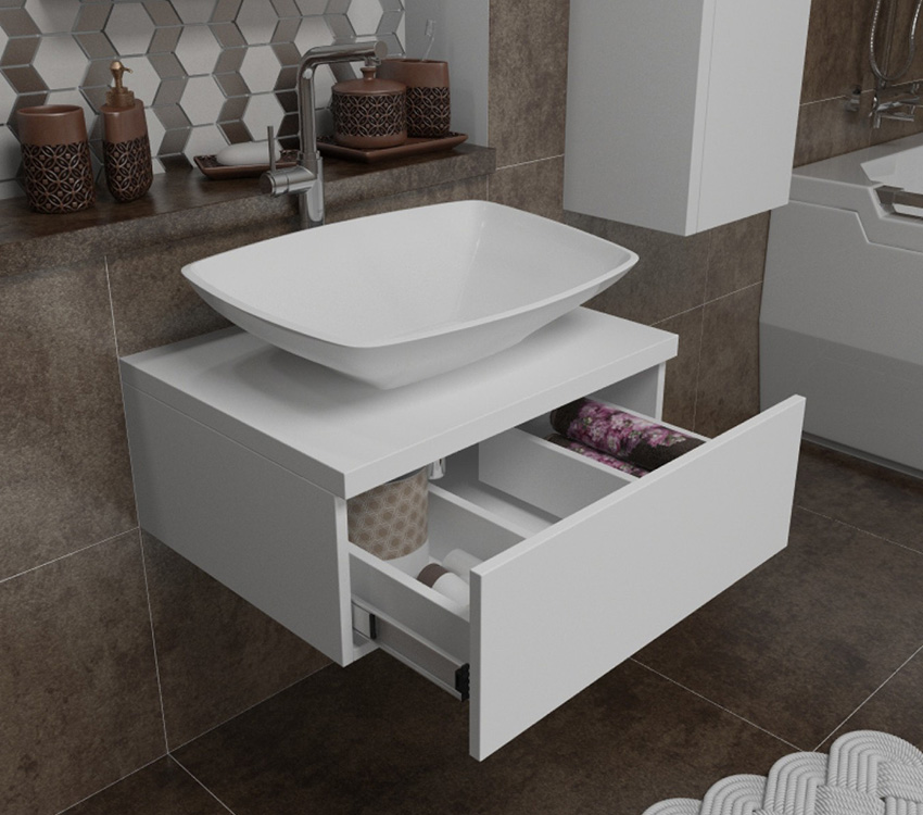 Прежде всего следует определиться с конструкцией будущей модели, которая зависит от выбранного умывальника. Встраиваемая раковина требует изготовления столещницы, полувстраиваемая – подгонку дверей или стенок. Избежать хлопот можно используя накладной умывальник.