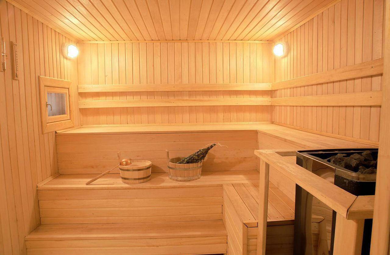 - Лежаки. Обычно размещают в несколько ярусов, чтобы те, кто любит побольше жара, могли забраться наверх, а те, кто хочет отдохнуть, могли посидеть внизу.