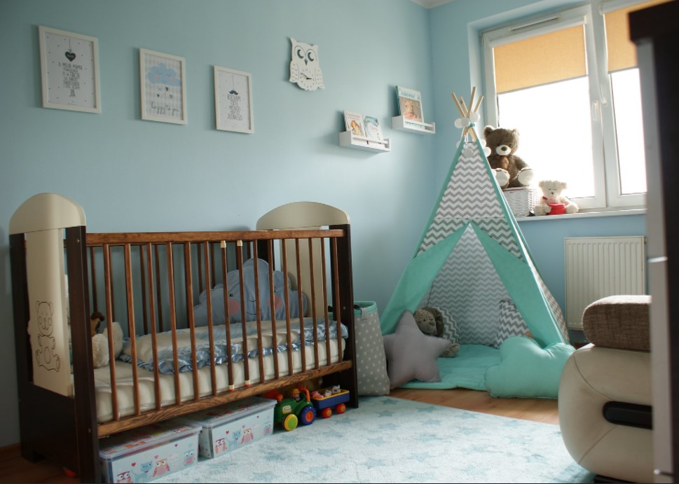 для мальчишек в качестве основных цветов отделки стен можно использовать: голубой, синий, белый, черный, желтый. Разнообразить интерьер можно яркими и стильными игрушками, текстилем, декоративными подушками;