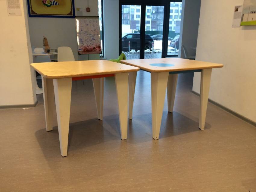 Высота зависит от роста ребенка. Например, при росте 80 см, подойдет стол около 35 см, а при росте 130 см, нужен стол почти в два раза больше.