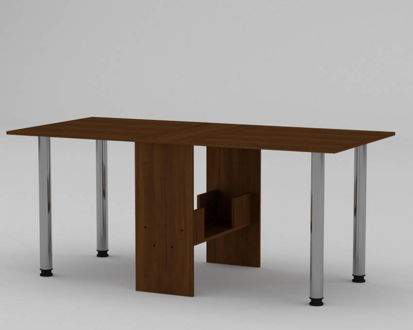 - Хорошая устойчивость. Столы-книжки из качественных материалов являются надёжной конструкцией. На его поверхность смело можно поставить большое количество блюд, а также мелкую бытовую или компьютерную технику.