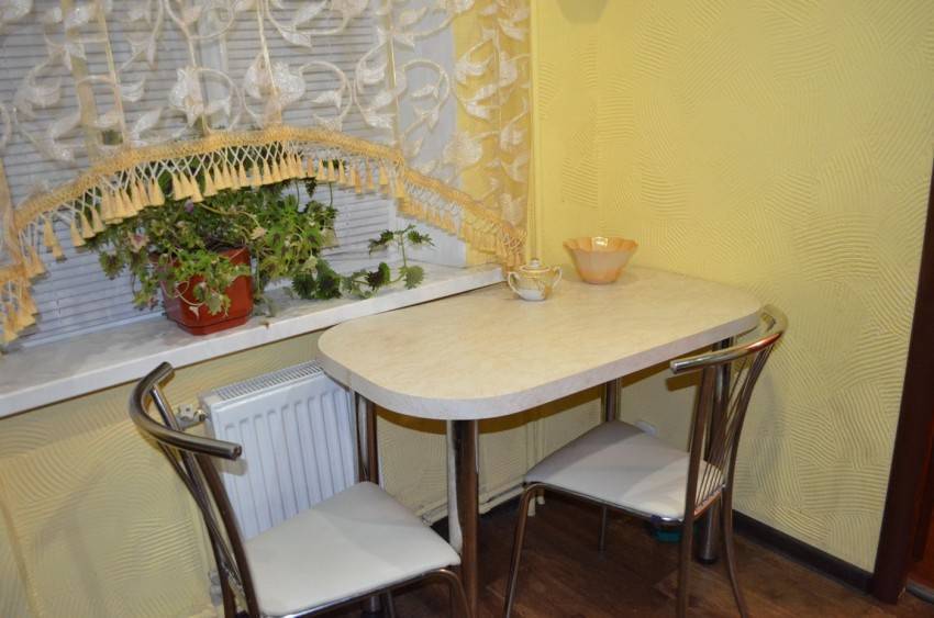 - Откидной столик. То же самое. Подойдет, если в доме мало пространства, или как место для обеда.
