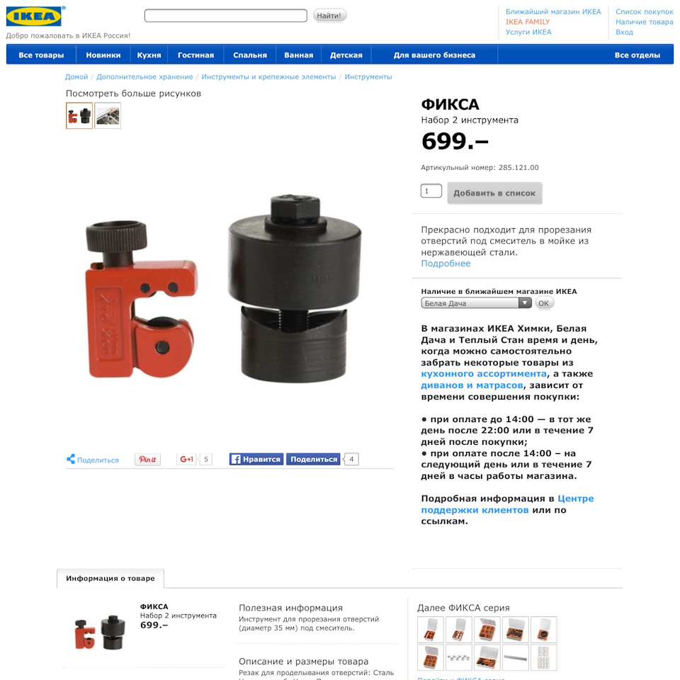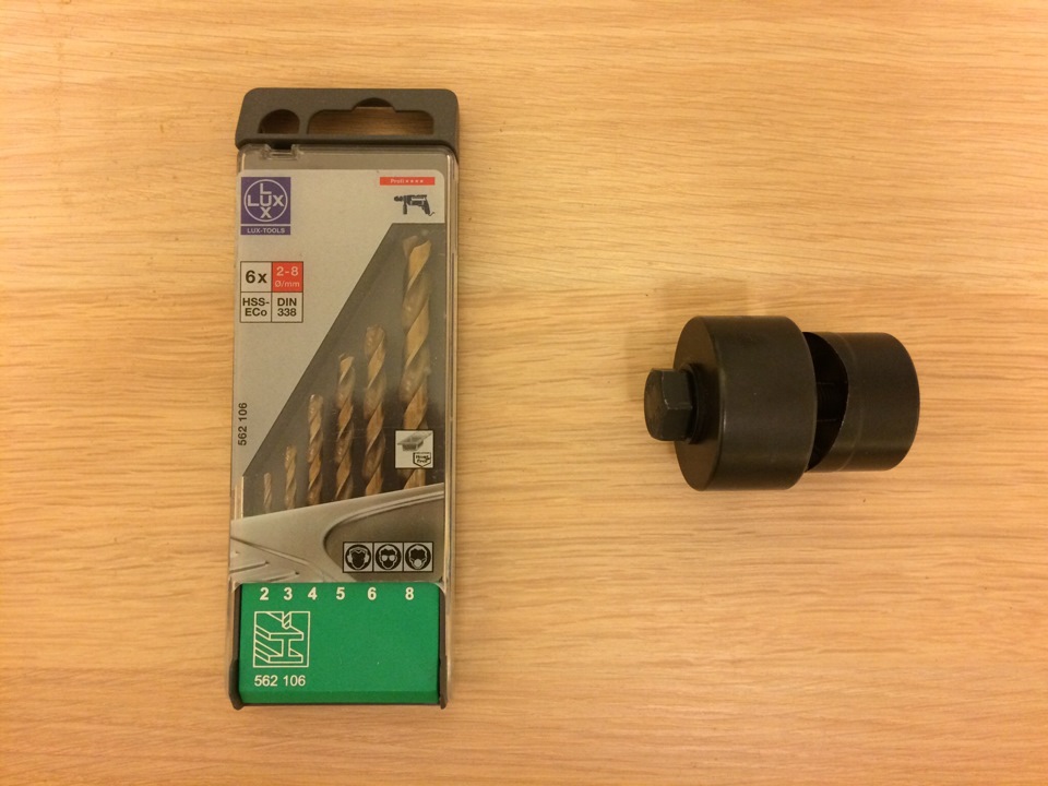 Кобальтовые сверла есть в хозяйственных магазинах, дешевле покупать набором чем по одному сверлу, просекатель встречается реже, у меня он фирмы KWB, но в Икее продается набор из трубореза и просекателя, который стоит в два раза дешевле, чем один мой просекатель (артикульный номер: 285.121.00).