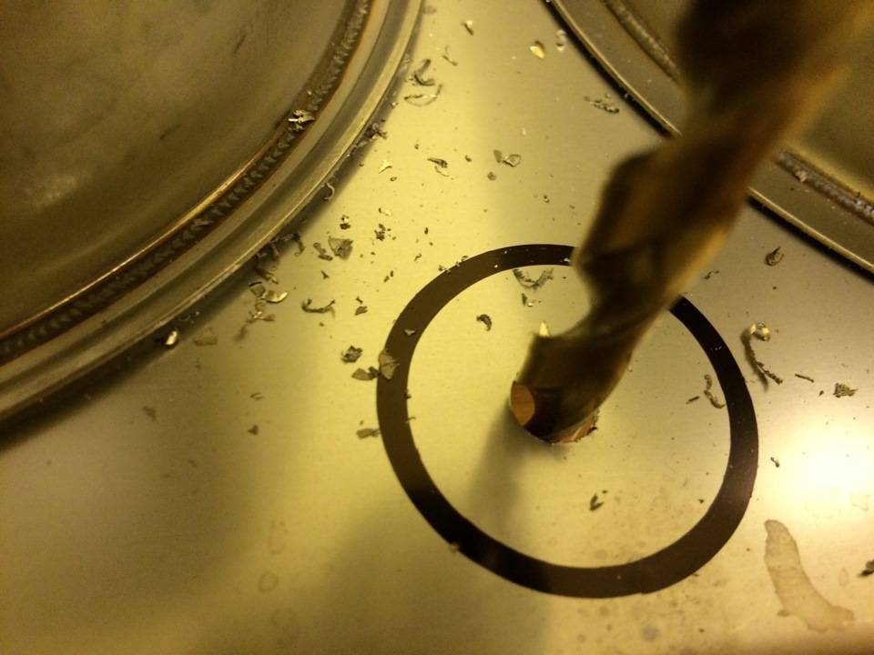 Альтернативщики подсказывают что если нет специального сверла, то можно первичное отверстие пробить большим гвоздем или шурупом, подложив что-нибудь ровное деревянное снизу — полученное отверстие можно уже рассверлить обычным сверлом: www.drive2.ru/b/1969469/