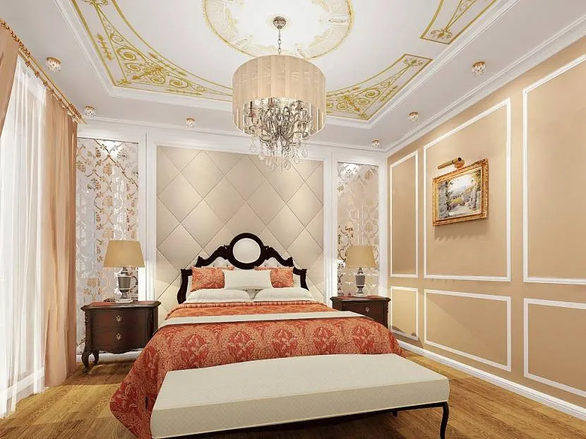 Интерьер персиковой спальни в классическом стилеИсточник hyundai-ptz.ru