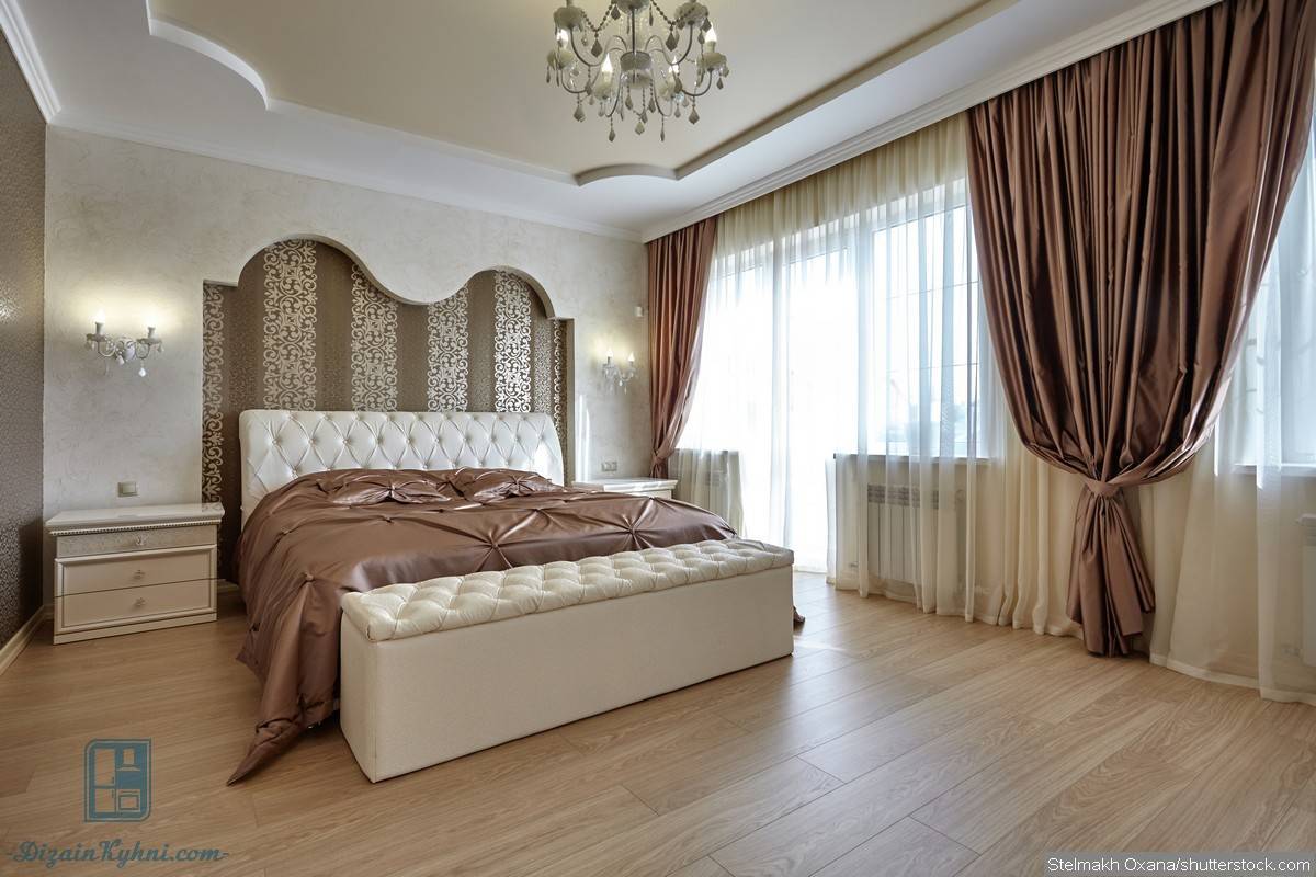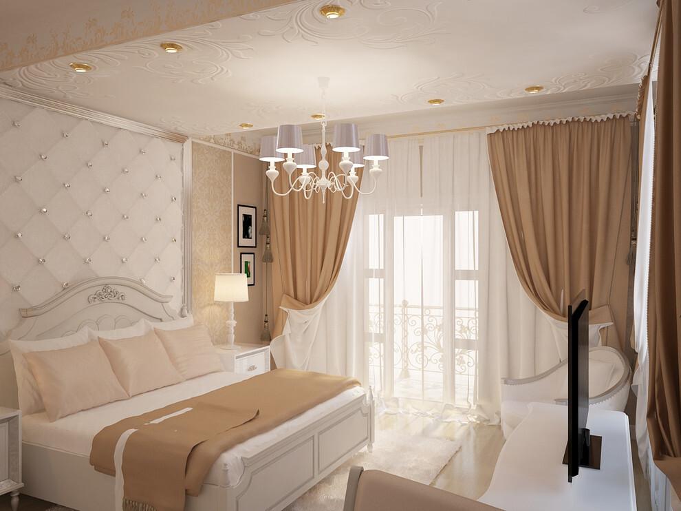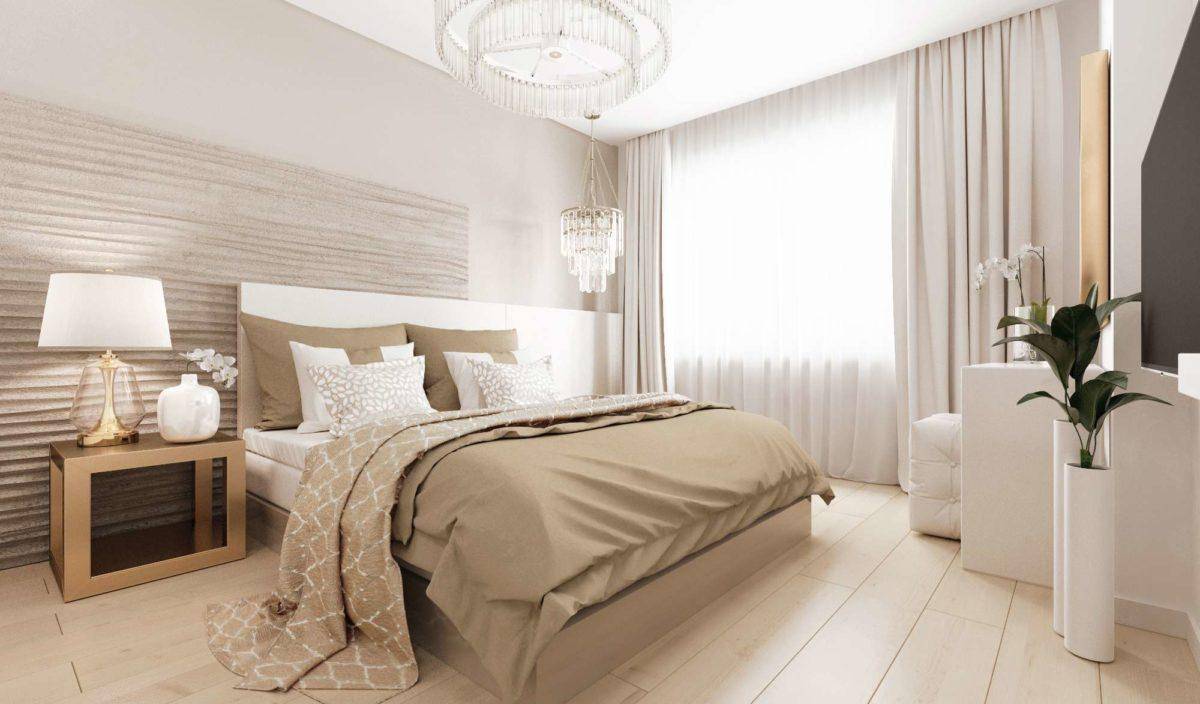 Бежевый часто становится основным фоном для интерьера спальни в светлых тонах. Он намного мягче и теплее, чем белый. Он придаст комнате комфорт, создаст атмосферу спокойствия и умиротворённости. Основные нюансы и закономерности такого оформления заключаются в следующих правилах: