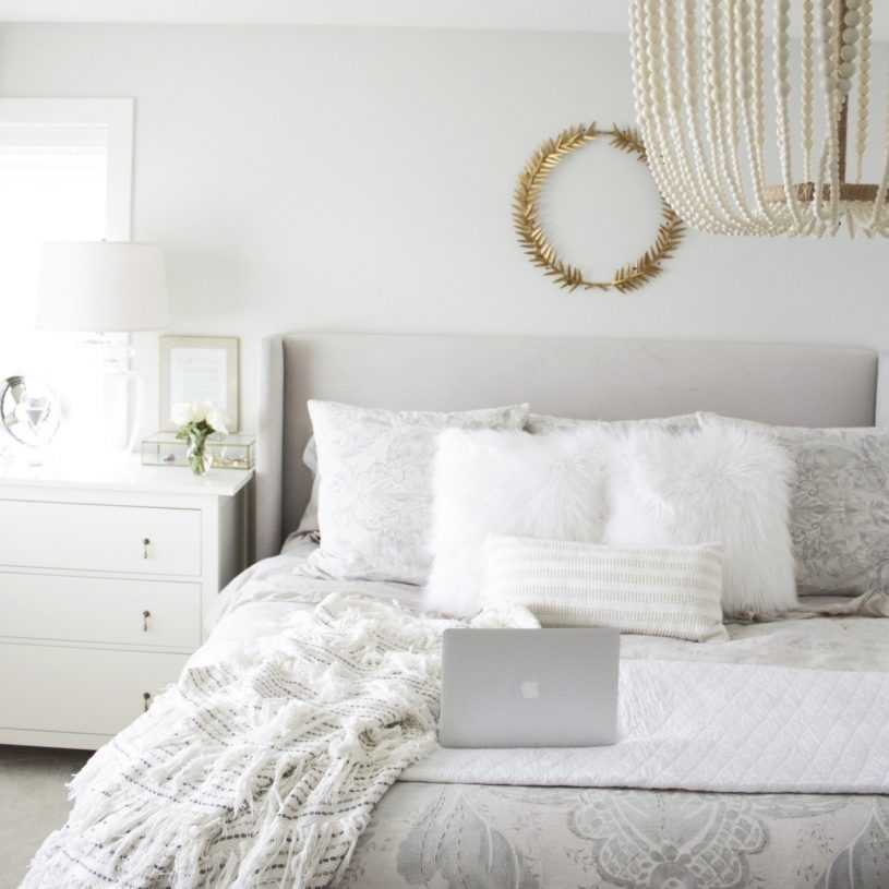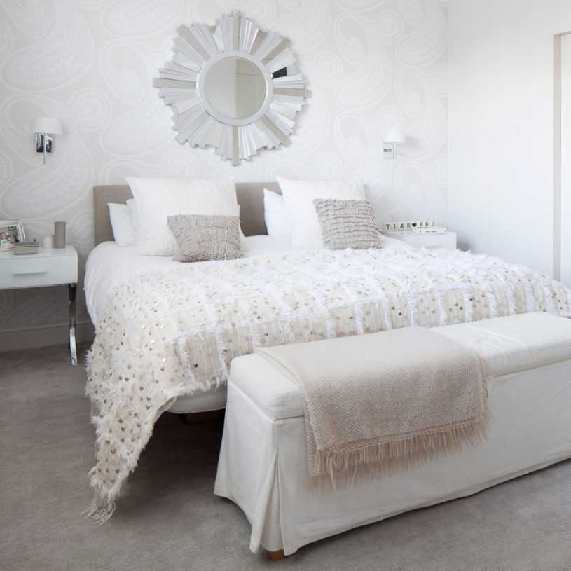 Достоинство белого в том, что он сочетается с любыми цветами, поэтому при оформлении спальни всегда можно добавить любимые тона, например, бросить на постель плед оттенка фуксии