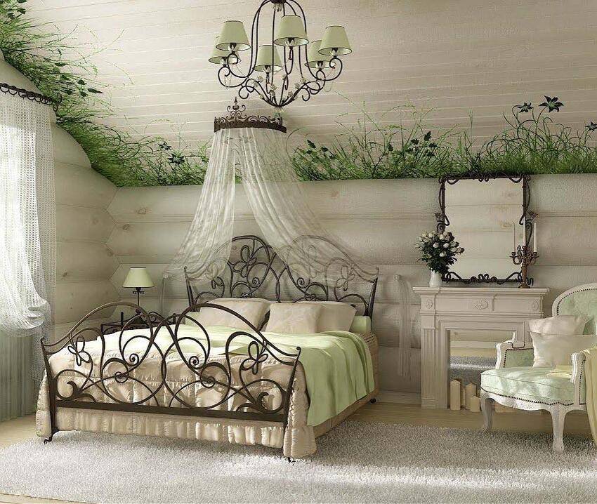 - это загородный дом. Тематика оформления интерьера полностью соответствует духу сельской местности, и спальня в стиле прованс станет отличным решением;