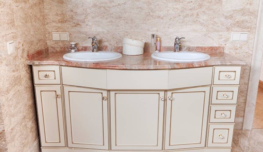 Нюансы при выборе мебели для ванны с двумя раковинами