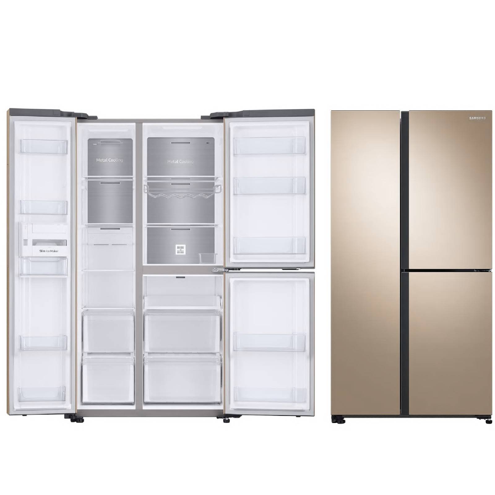 Данная конструкция холодильников появилась несколько десятилетий назад в США. Главной особенностью устройств стало то, что холодильная и морозильная камеры располагаются параллельно друг другу. Это позволяет вместить как можно больше продуктов. Таким образом люди могли хранить не только готовые блюда или свежие продукты, но и убирать в морозилку запас полуфабрикатов, облегчающих дальнейший процесс приготовления пищи.