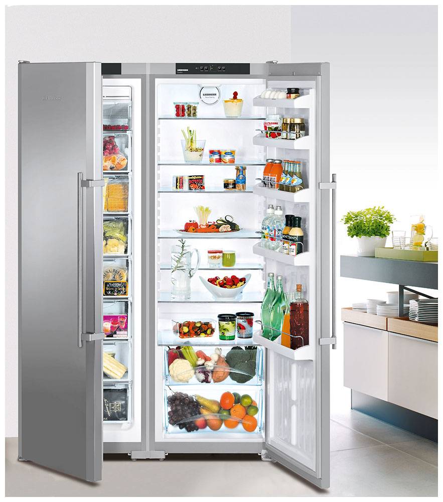 Стоит отметить, что по сравнению с аналогичными моделями холодильники Side-by-Side от Liebherr обладают полноразмерной морозильной камерой шириной 60 сантиметров, что позволяет хранить крупногабаритные продукты.