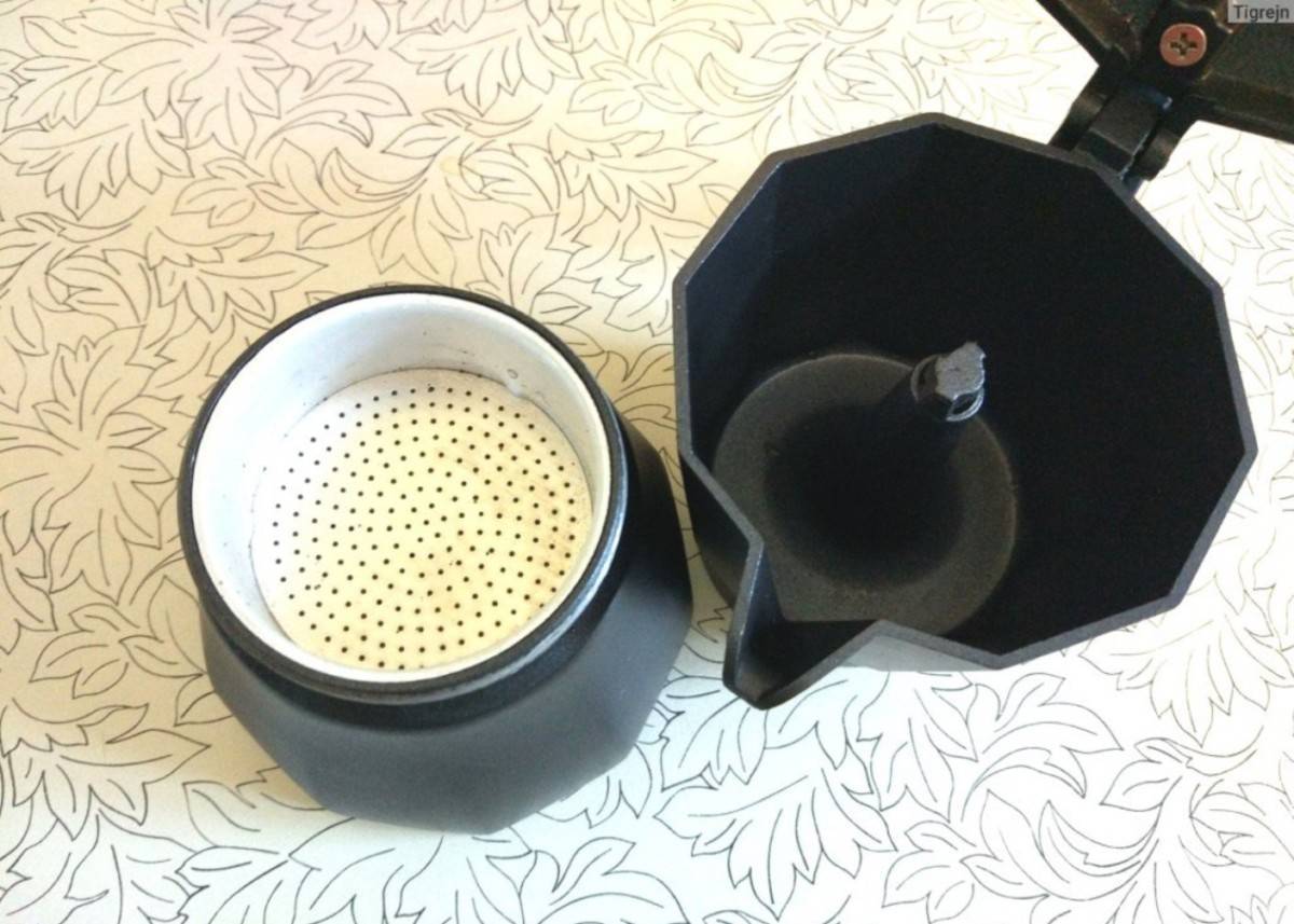 Внутри гейзерной кофеварки, в частности – в верхнем резервуаре, остаётся своего рода налёт. Отмывать кофеварку от него излишне тщательно не стоит — кофейные масла защищают напиток от контакта с материалом корпуса.