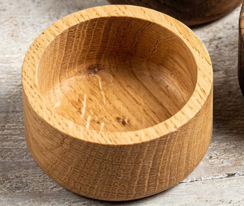 Даже на фото видно, что продукция добротная и своим внешним видом украсит любое пиршество. Комплект состоит из трех элементов. Цвет – темный. Изготовлен из массива дуба. Шлифовка качественная. В качестве пропитки используется воск и безопасное натуральное масло. Высота изделия – 4 см, диаметр – 6 см. Вес комплекта – 200 грамм. Товар можно приобрести в специализированных торговых точках или заказать онлайн в интернет – магазине. Производитель – российская фирма.