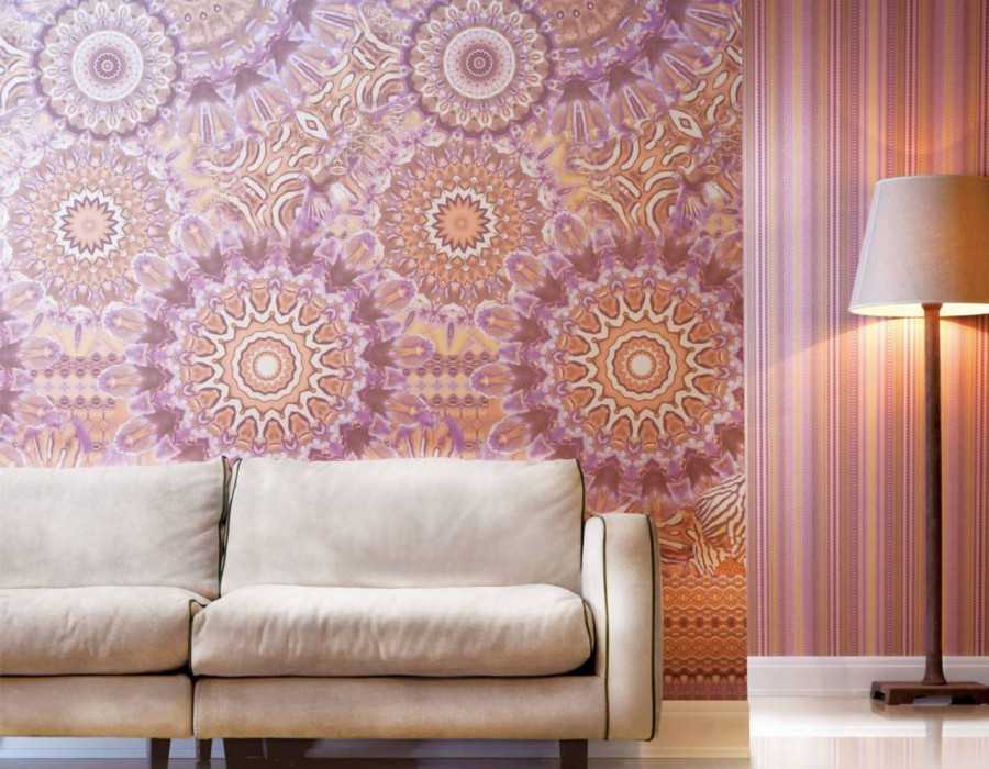 Выбирая декоративные обои для стен с принтом, учтите, что, чем меньше комната, тем меньшим должен быть узор.