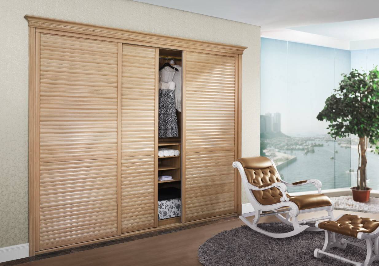 Главное, чем они отличаются от остальных своих собратьев – раздвижные двери. Их полотно движется по верхнему и нижнему треку. Ширина шкафа (но не его дверей) может достигать 3 м. Высота варьируется от 60 см до потолка.
