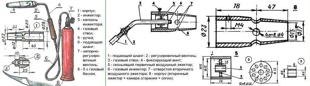 Приобрести горелку нужно заранее, до того, как запасаться всеми материалами. Дело в том, что горелки бывают различных размеров и форм – чертежи и схемы будут разрабатываться исходя из этого.