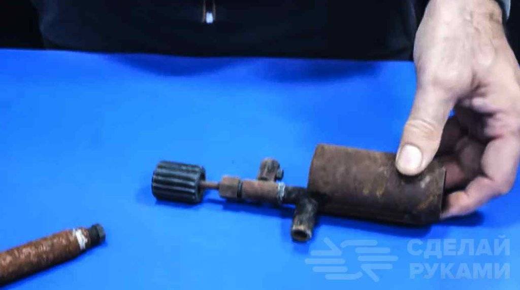 Первым делом необходимо будет снять с паяльной лампы горелку — она и послужит основным элементом нашей самоделки.