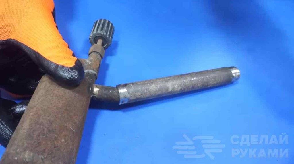 Первым делом необходимо будет отрезать кусок металлической трубки подходящего диаметра и нарезать на конце резьбу.